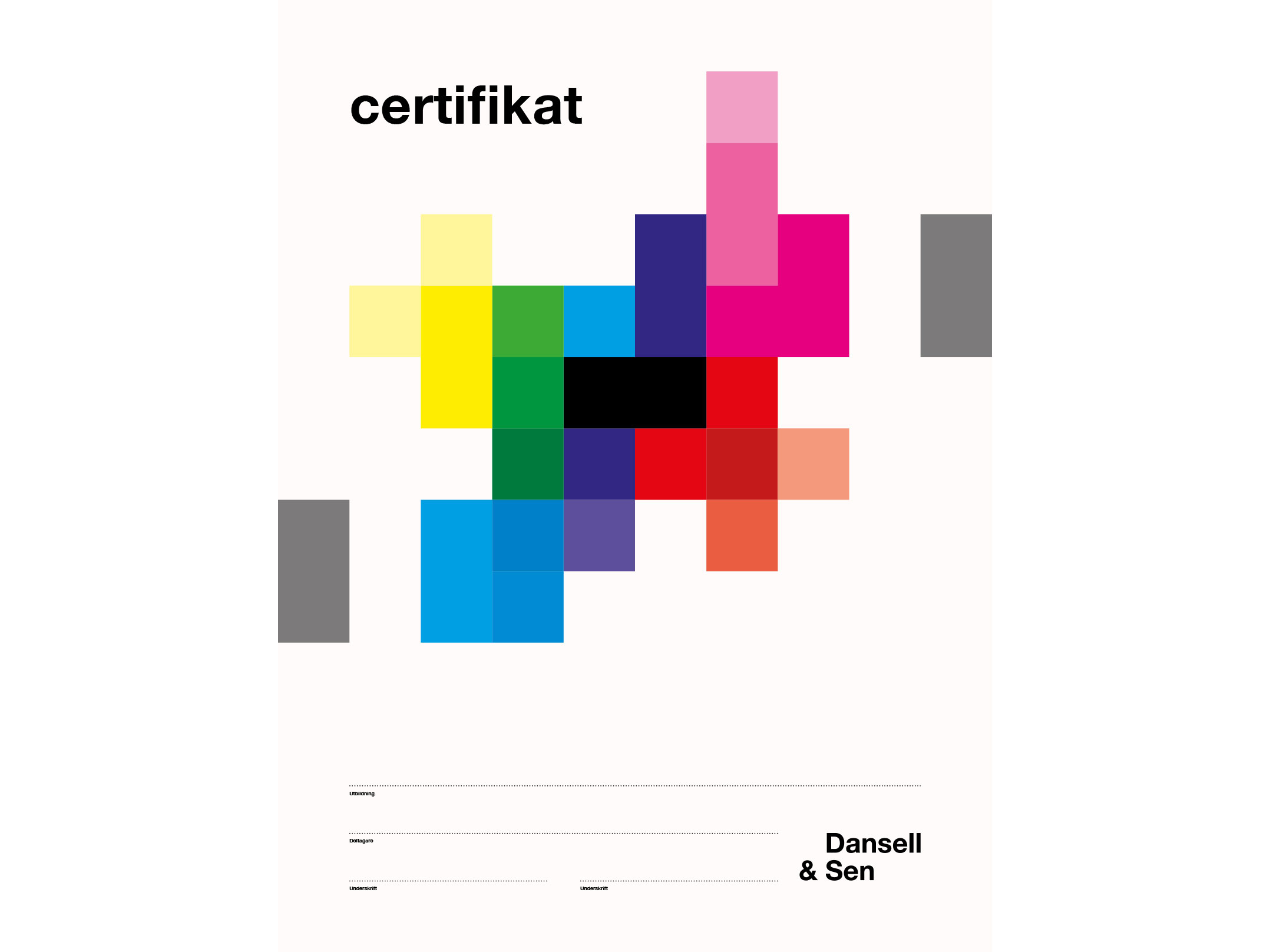 Business consultants and educators Roland Dansell and Satish Sen guide CEOs and boards through different kinds of company transition phases—for example when selling or expanding a business— as well as offering courses on the subject. Our commission was to create the logo and graphics for certificates and diplomas. We constructed a pixel language, a set of tools that can be arranged and rearranged to take on each specific challenge.