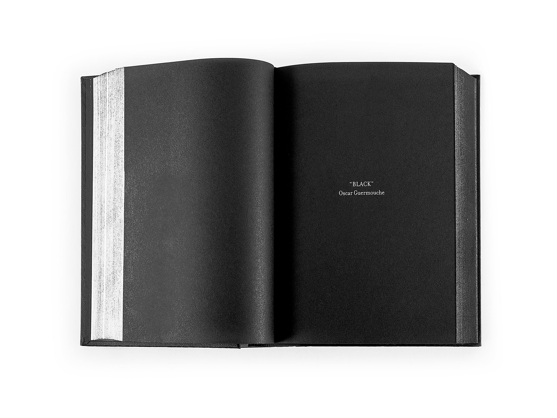 The book includes an essay by artist Oscar Guermouche. The text debates the word “black” and what it means to the objects, phenomena, and people it is ascribed to.